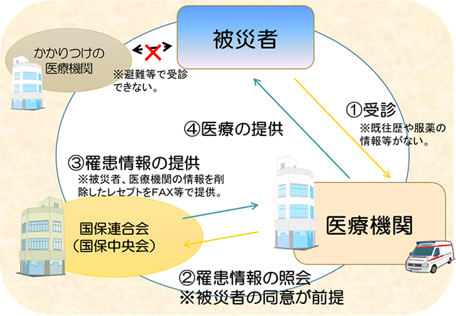 災害により被災した医療保険の被保険者(被災者)の既往歴や薬剤情報は以下の方法により閲覧または情報提供を受けることができます。
